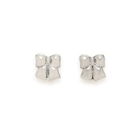 ロゴマークであるリボンを小さく立体的にデザインしたピアス。全体的に綺麗に光沢が出る様に磨く回数を増やし、高級感のある仕上がりになるよう、こだわり作成しています。裏面にはさりげなく変形ロゴをデザインしています。