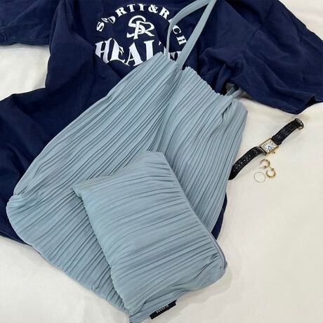 絶妙なくすみカラーがかわいい、BLUEORBのプリーツバッグ。