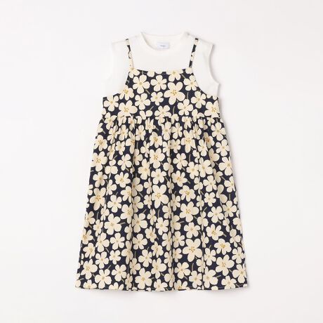 オリジナルのフラワー柄をプリントした、キャミソールワンピースと無地ノースリーブのセット。