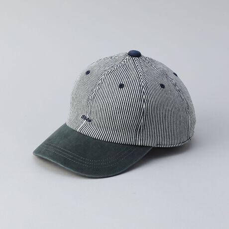 クラウンはストライプ柄、ブリムは無地のメリハリがあるデザインのキャップ。