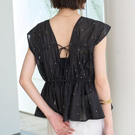 繊細なシルバー糸で施されたドット刺繍が華やかさをプラス。
