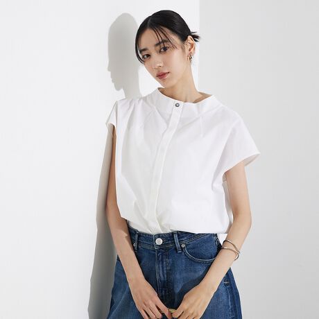 テーラードジャケットのインナーにすれば、知的で上品なオフィススタイルに。