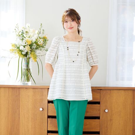 【手洗いOK】シースルーチェック切替ブラウス