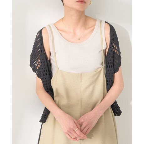 煌めくラメを編み込んだテレコ素材のタンクトップ。横長のラウンドネックでデコルテラインを綺麗に魅せてくれます。しなやかなリブニット生地の快適な着用感も魅力的。ソフトフィットなシルエットで着こなしやすく、ジャケットやシャツ、ワンピースなどと合わせてインナーアイテムとしても活躍してくれます。透け感[ややあり]