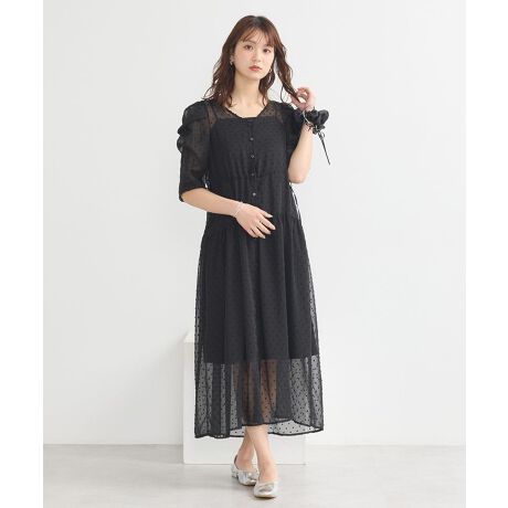 <b>【超十代-ULTRA TEENS FES-2025 桜庭遥花さん(CUTIE STREET)さん着用アイテム】</b>表情のあるドット柄生地で仕立てたワンピース。ヘルシーな雰囲気を演出するシアーな素材感やふんわりとしたタックスリーブがフェミニンムードを引き立てます。胸下のリボンでギャザーを寄せ、シルエットを変えられるのも嬉しいポイント。羽織としても活用でき、春夏シーズン通して長く活躍するアイテムです。