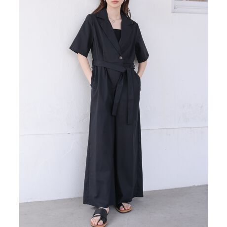 春夏に着たい1枚でサマになるオールインワンの登場!胸元がすっきりとして見えるテーラードシルエットと、ワイドストレートパンツでハンサム見えしつつ、ウエストのリボンで女性らしさもプラス。ウエスト位置が高く足長効果があるのも嬉しいポイントです。