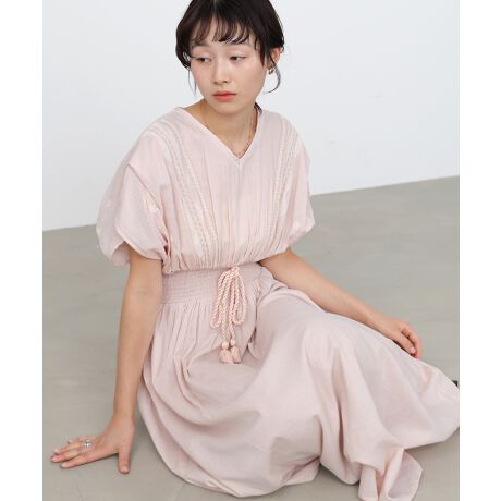 昨シーズンも大好評だったインドコットンを贅沢に使用したワンピース!柔らかくさらっとした質感で肌触りがよく、軽いシワ感はオリエンタルな情緒が漂います。ほどよくシアー感があり、ロングワンピースながら抜け感を演出できる1枚。顔周りやデコルテをすっきりと見せるVネックとウエストシャーリングでスタイルアップも叶い、脚長効果も期待できます。派手過ぎず上品見えする刺繍の位置やデザインにもこだわりました。