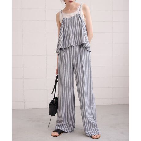 上下セットで着るだけでサマになります。別々でも着られてデザイン性のあるキャミトップスはデニムなどに合わせて夏らしい涼しげな印象をプラスしてくれます。
