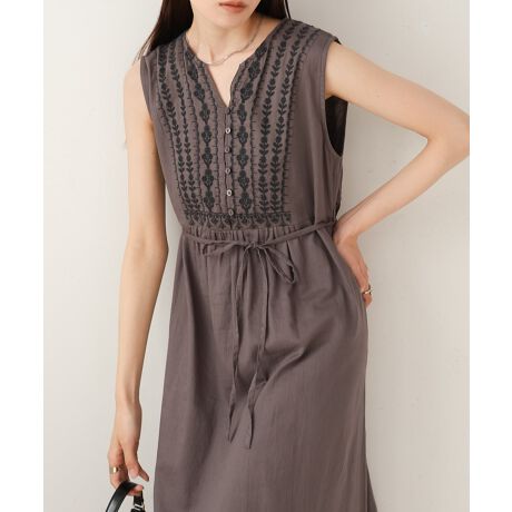 \セール中!/【S・Mサイズ展開】パネル刺繍ノースリワンピース