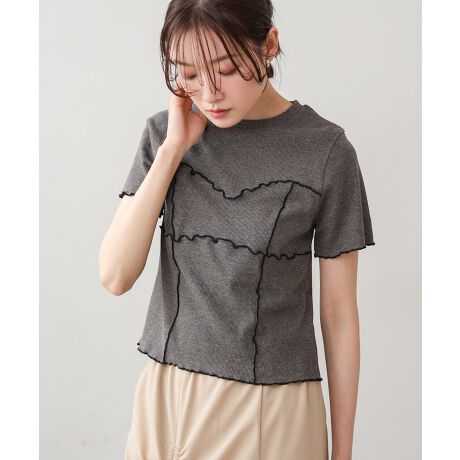 ビスチェ風のメロウ切り替えデザインが特徴で、一枚でレイヤード風の着こなしが楽しめるアイテムの登場です。配色のメロウステッチがアクセントになっていて、シンプルなのに存在感があり、着るだけでこなれ感を演出できます。ほどよくフィットするシルエットで、女性らしさもありつつ、着心地も抜群です。