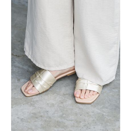 サテンギャザーフラットサンダル
