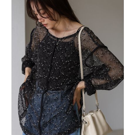 タンクトップやキャミソールとのレイヤードが楽しめるシアー感で、着こなしの幅も広がる1枚。デニムやカーゴパンツ、ナロースカートとの相性も抜群で、今季のスタイリングにぴったり。