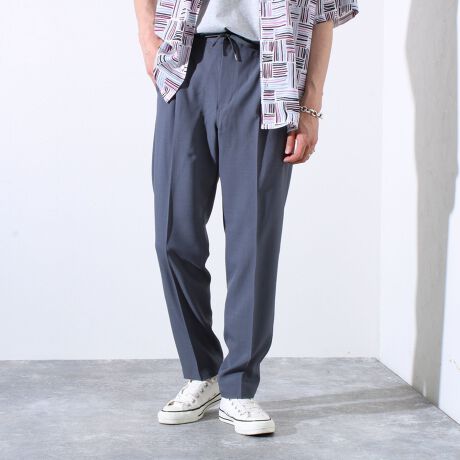 ドローコード付きのイージー仕様で、着回しがしやすいテーパードシルエットになっています。