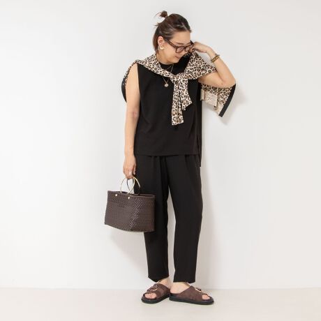・ややゆとりのあるサイジングのバレルシルエットパンツ