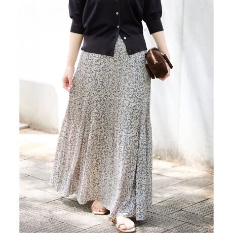 モノトーンの小花柄をプリントしたプリーツスカート。