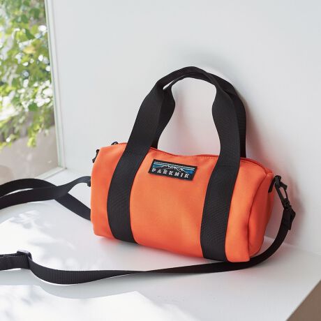 フロントのタグをワンポイントにしたシンプルなドラムバッグ。