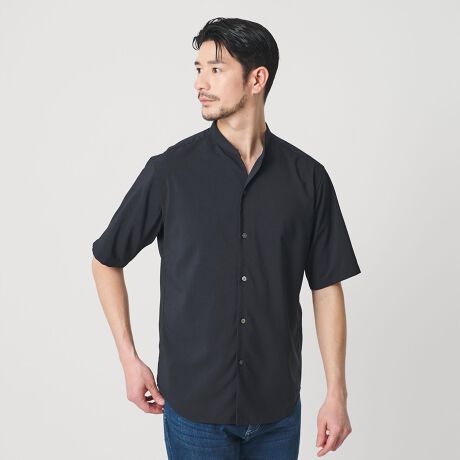 きれいなドレープ感が特徴のスマートバンドカラーシャツ