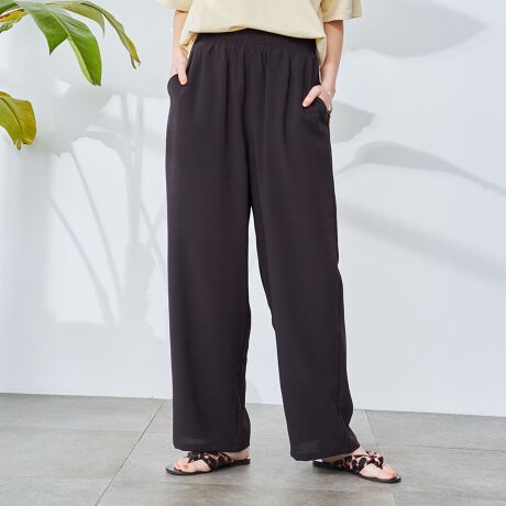 ワッシャー感のある素材ながら、上品できれいめな印象に仕上げたイージーワイドパンツ。