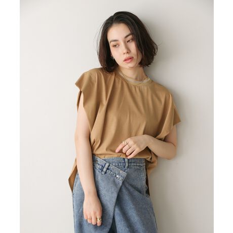 裾はラウンドにすることでより女性らしい印象に仕上げました。程良いスリットはスカートもパンツも合わせやすい仕様です。