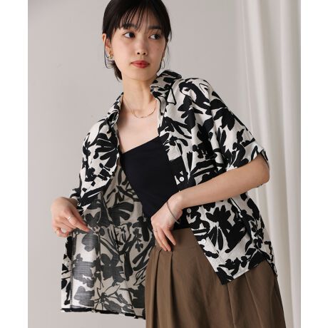 大胆なプリントが夏に映えるサマーブラウス!丸みを帯びたドロップショルダーの優しいシルエットが印象的です。女性らしい小さめのレギュラーカラーでちょっぴり上品さもプラス。さらりと羽織ってもサマになる、ワードローブのアクセントにしたい1枚です。