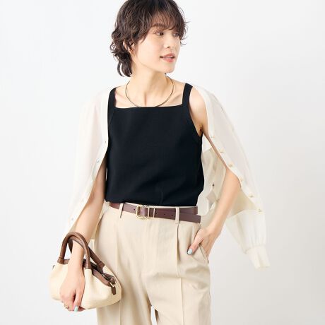 ・スクエアネックが特徴のヘルシーなタンクトップ