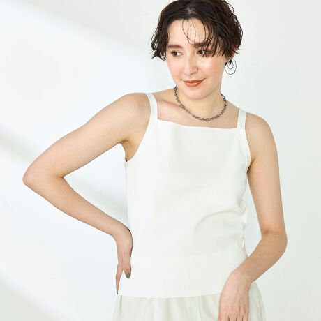 ・スクエアネックが特徴のヘルシーなタンクトップ