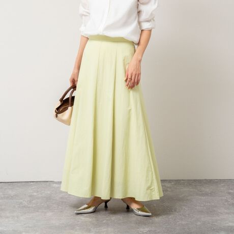 ・タスラン加工のタフタ素材を使用したロング丈のフレアスカート