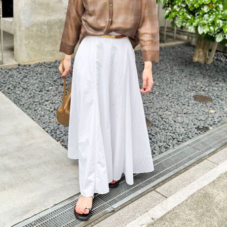・タスラン加工のタフタ素材を使用したロング丈のフレアスカート