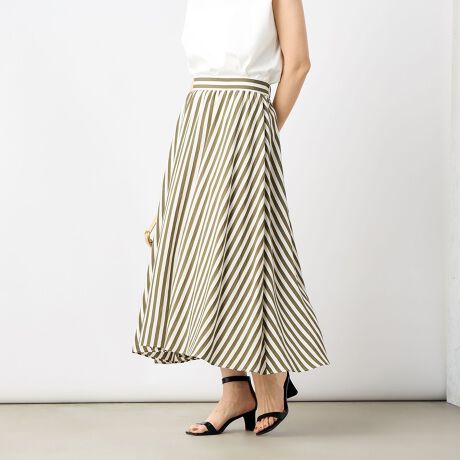 ・夏らしい爽やかさのあるストライプ柄のフレアスカート