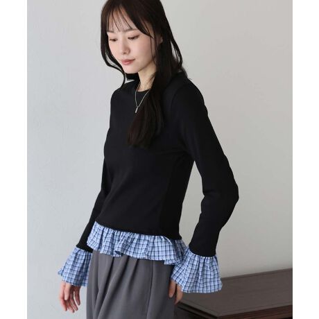 袖のフリルと裾のペプラムデザインでラブリーさを入れながらも、