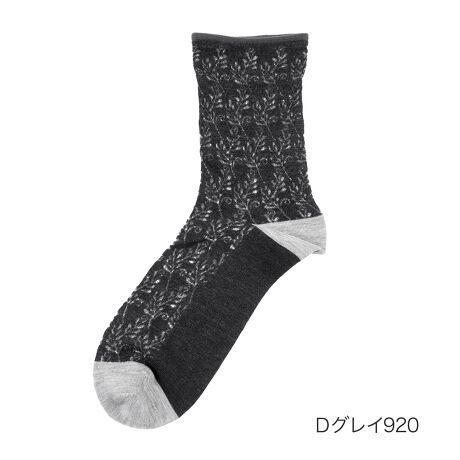 【満足 : 冷感】 靴下 ボタニカル柄 クルー丈 レーヨンシルク(3145-43N)