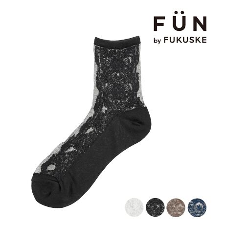 【fukuske FUN(フクスケファン) : femieu】 靴下 シアー レース柄 クルー丈
