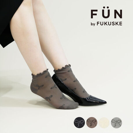 【fukuske FUN(フクスケファン)】 靴下 femieu リボン柄 ショート丈