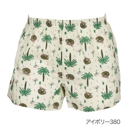 ヤシの木とナマケモノがおもしろかわいいデザインのトランクスです。サラッとした綿100%素材で履きやすく、ちょっとしたプレゼントやひとクセあるパンツが欲しい方におすすめです。