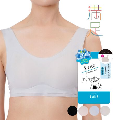 美温活シリーズから暑さ対策にオススメの「美涼活シリーズ」が登場しました。ひんやり接触冷感のハーフトップです。肌に当たる部分はシルク混でやさしく、汗を吸い取ってサラッと吸水速乾。アウターに響きにくいシームレス設計です。