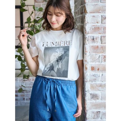 着映えするフォトTeeはそのまま1枚で着ても、ベストやジレを羽織ってロゴをチラ見せしてコーディネートのアクセントにしても◎。