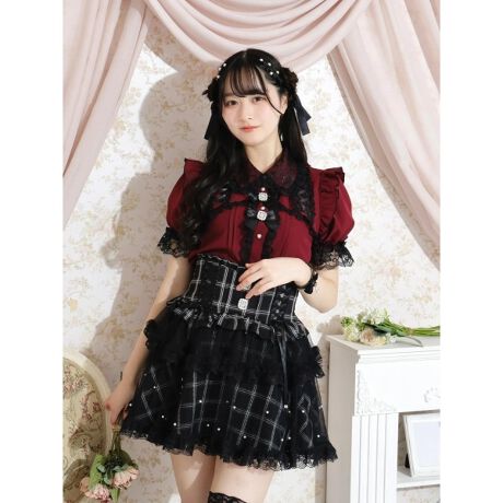 キラキラリボンレースアップブラウス