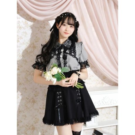 襟や袖口にはレースを施しており、スタイリングに華やかな印象をプラスします。