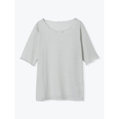5分袖ラメテレコトップス