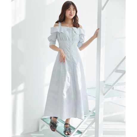トレンドの肩見せデザインで色っぽ上品に仕上げたシャツワンピースが登場
