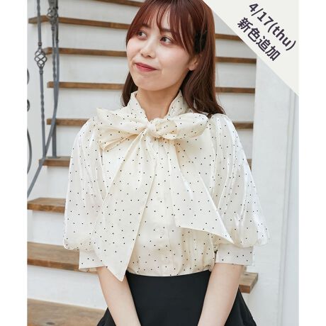 大きなリボンがポイントのボウタイブラウス