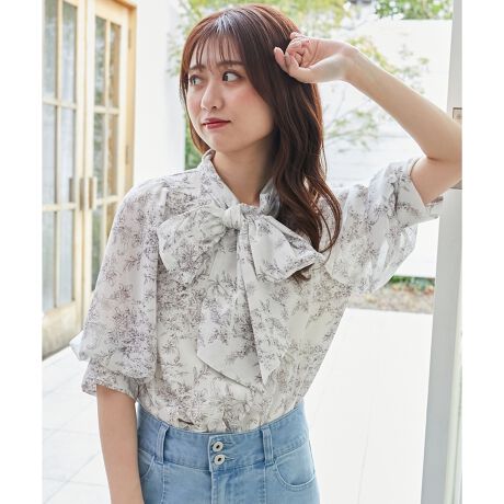 大きなリボンがポイントのボウタイブラウス