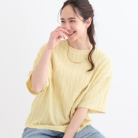 1枚で着映え ジャカードフリンジ5分袖トップス