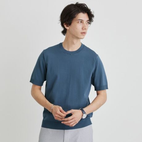 着心地も見た目もジャケットとの相性良好なニットTシャツです。