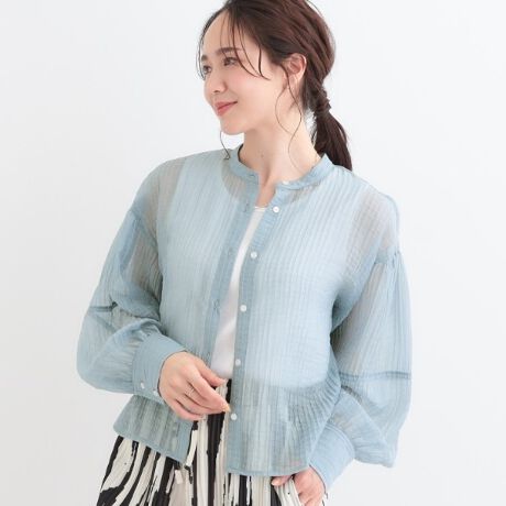 表面感にデザインが施されており、ストライプ見えするシアーシャツ。