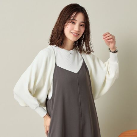 ワンピースとの相性のよい短丈羽織りアイテムです。