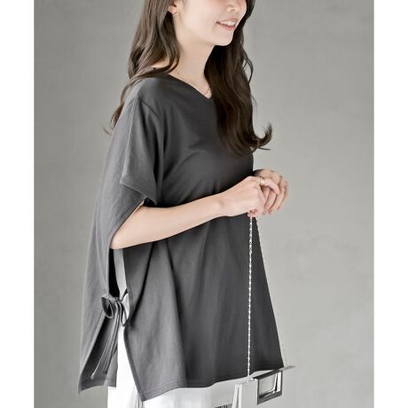 横に広がるVネックは女性らしいデコルテを演出してくれます。