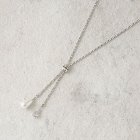 涙のような形状の人工真珠と、キラキラ輝くクリアガラスが、性らしさと大人ぽさを強調し、特別な瞬間を演出します。