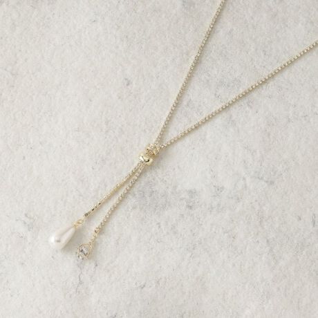 涙のような形状の人工真珠と、キラキラ輝くクリアガラスが、性らしさと大人ぽさを強調し、特別な瞬間を演出します。