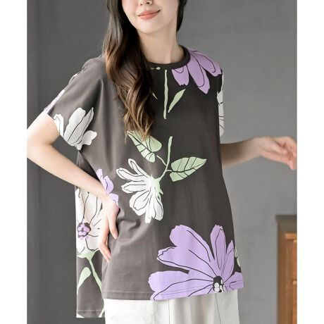 【クールタッチ】インパクトのあるフラワープリントTシャツ
